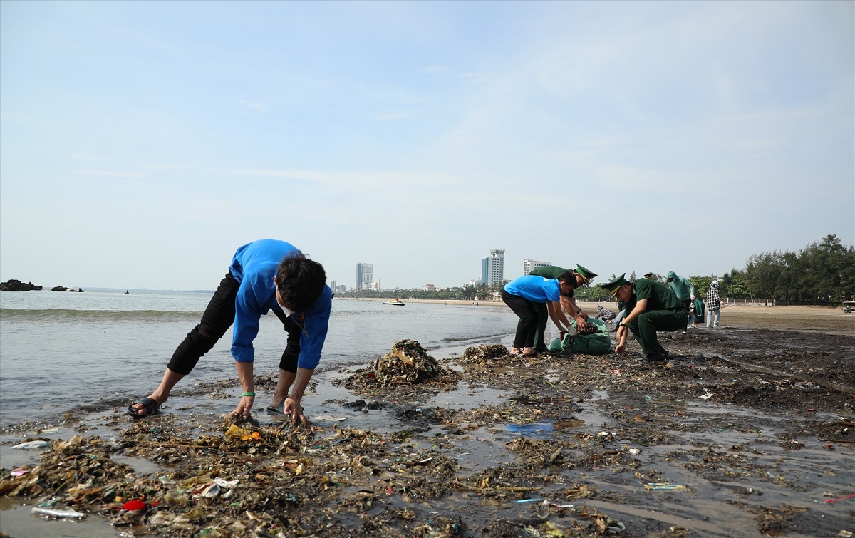 SV NAUE cùng Lực lượng quân đội, hưởng ứng tích cực hoạt động làm sạch bãi biển