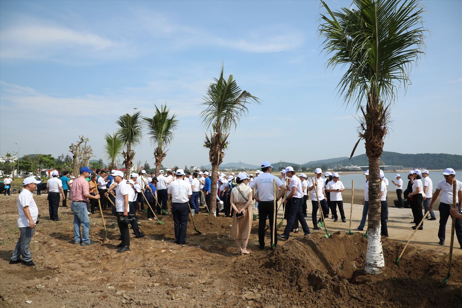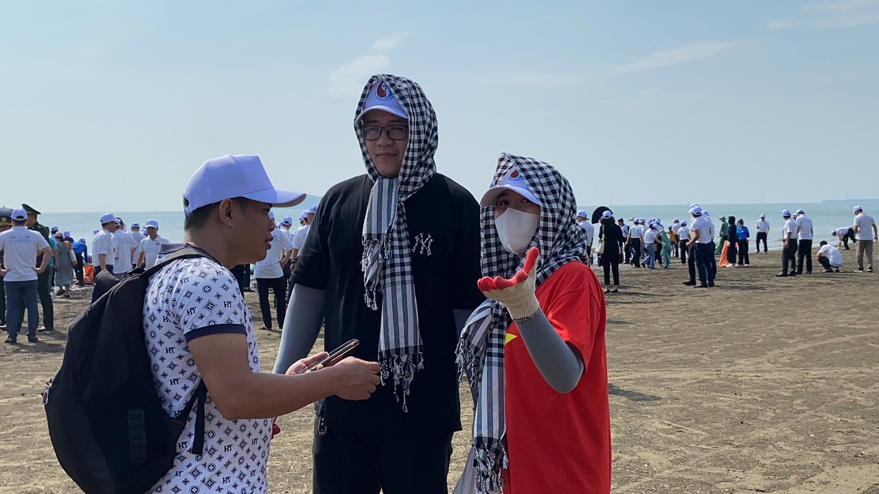Sau Lễ phát động, SV NAUE, các đại biểu ra quân làm sạch bãi biển và trồng cây tại làng chài Nghi Thủy, thị xã Cửa Lò (Nghệ An)