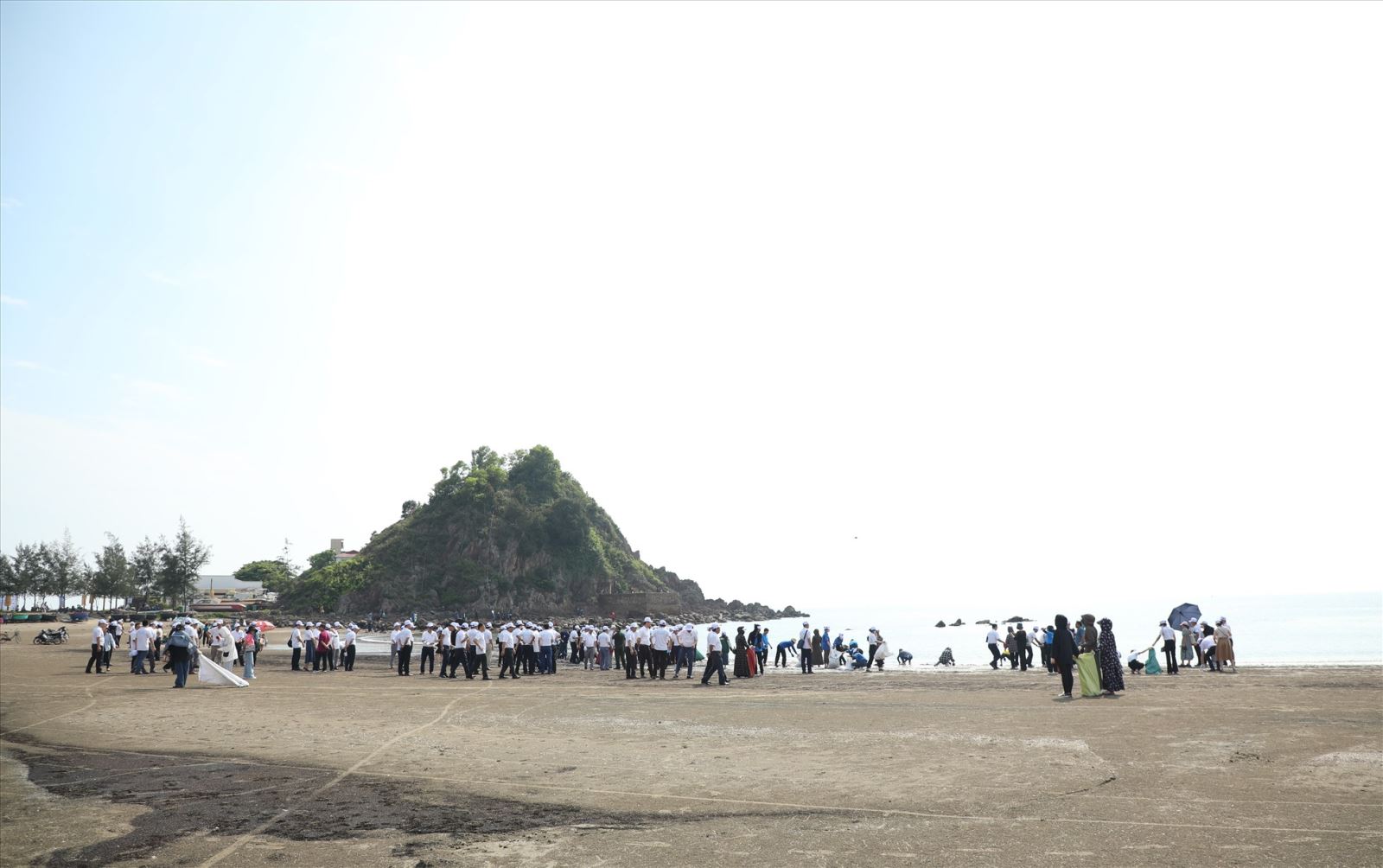Sau Lễ phát động, SV NAUE, các đại biểu ra quân làm sạch bãi biển và trồng cây tại làng chài Nghi Thủy, thị xã Cửa Lò (Nghệ An)